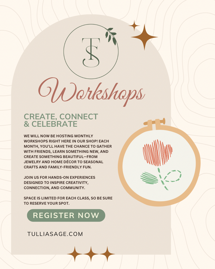 We’ve always dreamed of Tullia Sage being more than a boutique it’s a place for connection, creativity, and community. 💚 That’s why we’re launching in-shop workshops each month! 🎉