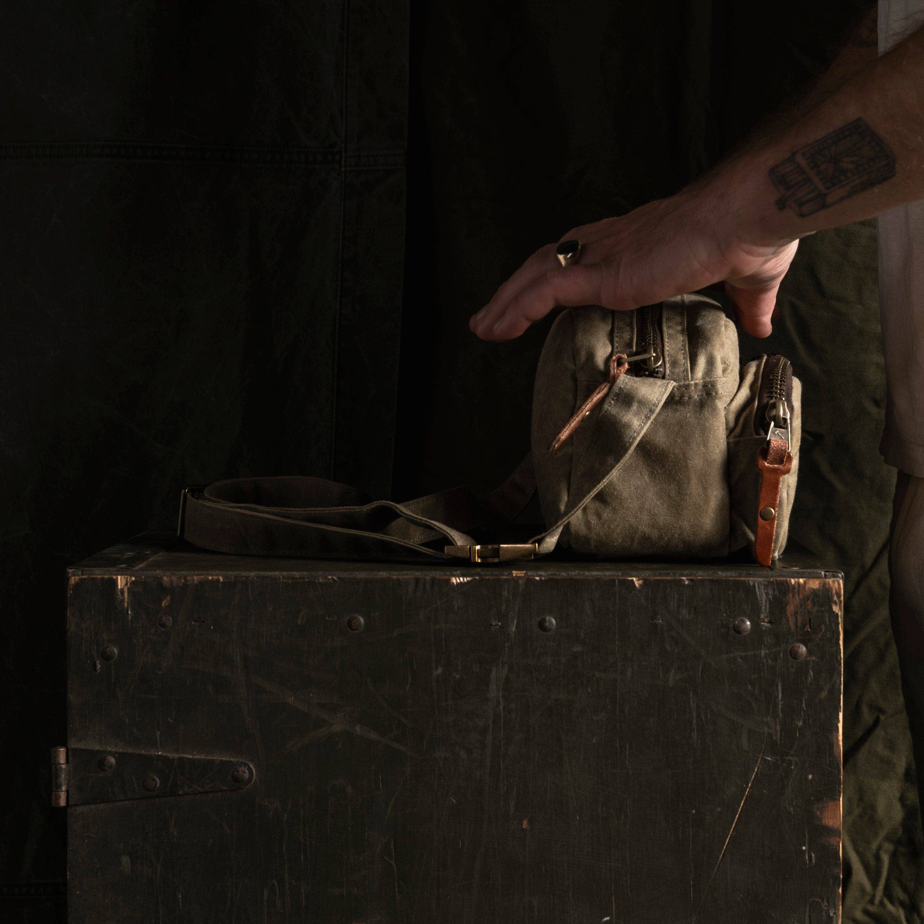 This bag is a fantastic crossbody style bag that is built larger than our Pointer Bag. This is made for the camera enthusiast who carries cameras wherever they go. Put your camera, film, and other accessories (sunglasses, wallet etc) in this bag for quick access and easy of organization. This bag (as well as the Pointer is padded on all sides). This bag can hold many types of cameras (typically a rangefinder style cameras like a Leica, or Minolta CLE, a compact SLR camera, and can even hold larger cameras like a Hasselblad medium format camera as well).