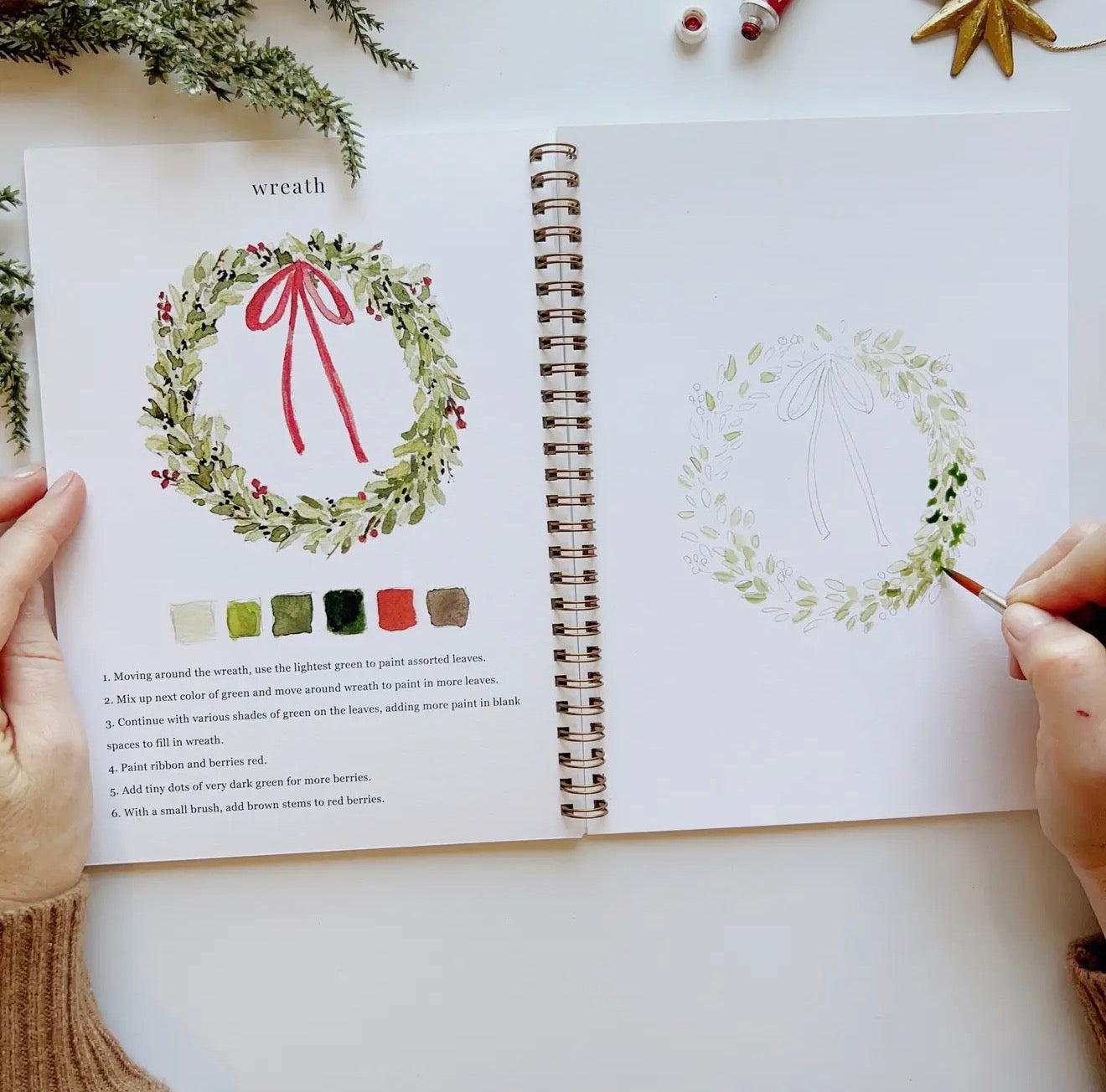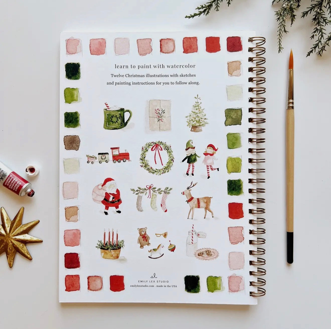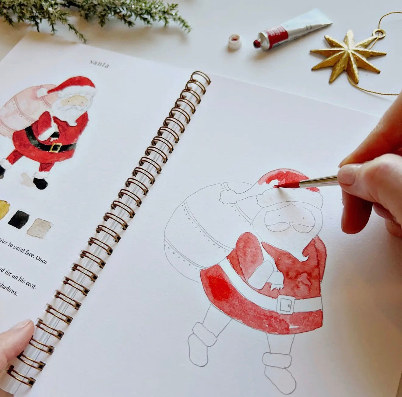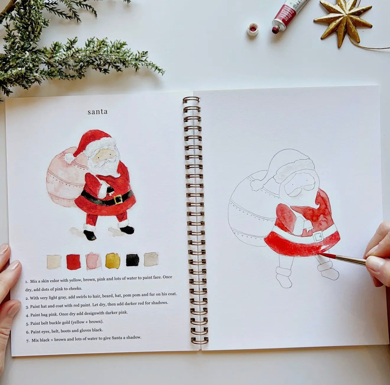 The Christmas Watercolor Workbook includes 12 Christmas-themed illustrations with an example of the finished painting, step-by-step instructions, and a lightly illustrated sketch for you to paint. It’s just like a coloring book, but with watercolor!