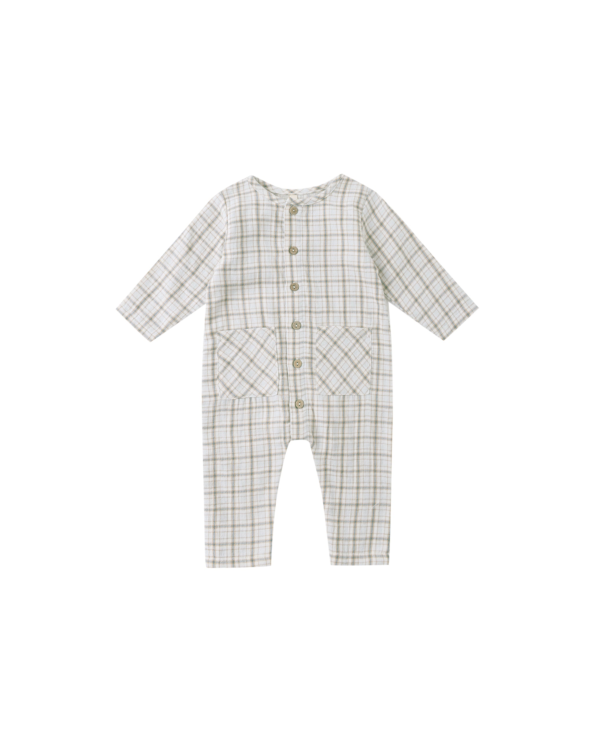Made from soft organic cotton gauze, this darling jumpsuit features square patch pockets on the front and buttons down the center for easy changing - an everyday staple with timeless charm.