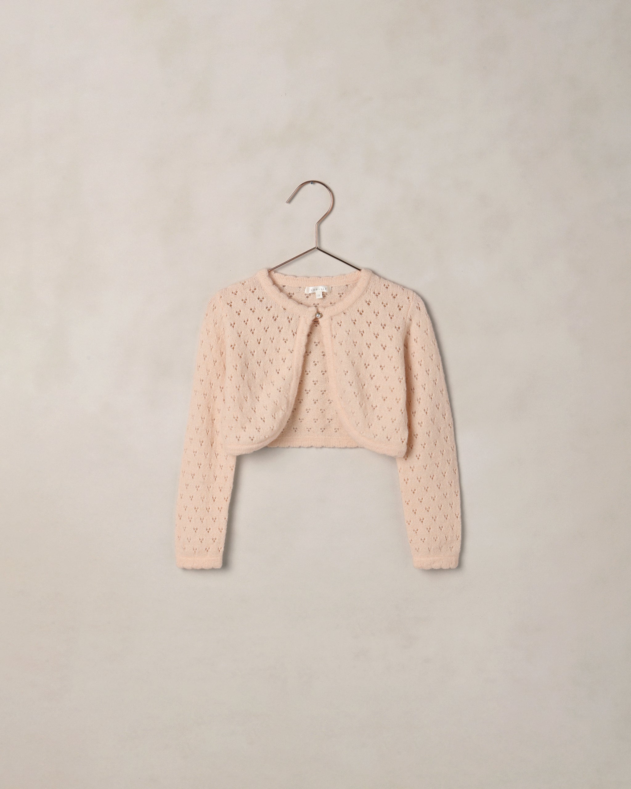 Our Bolero Sweater's beautiful heart pointelle knit, open-front design with single button enclosure makes it the sweetest addition to any look. Pair with a tulle style for your little ballerinas or with one of our dresses for added comfort.