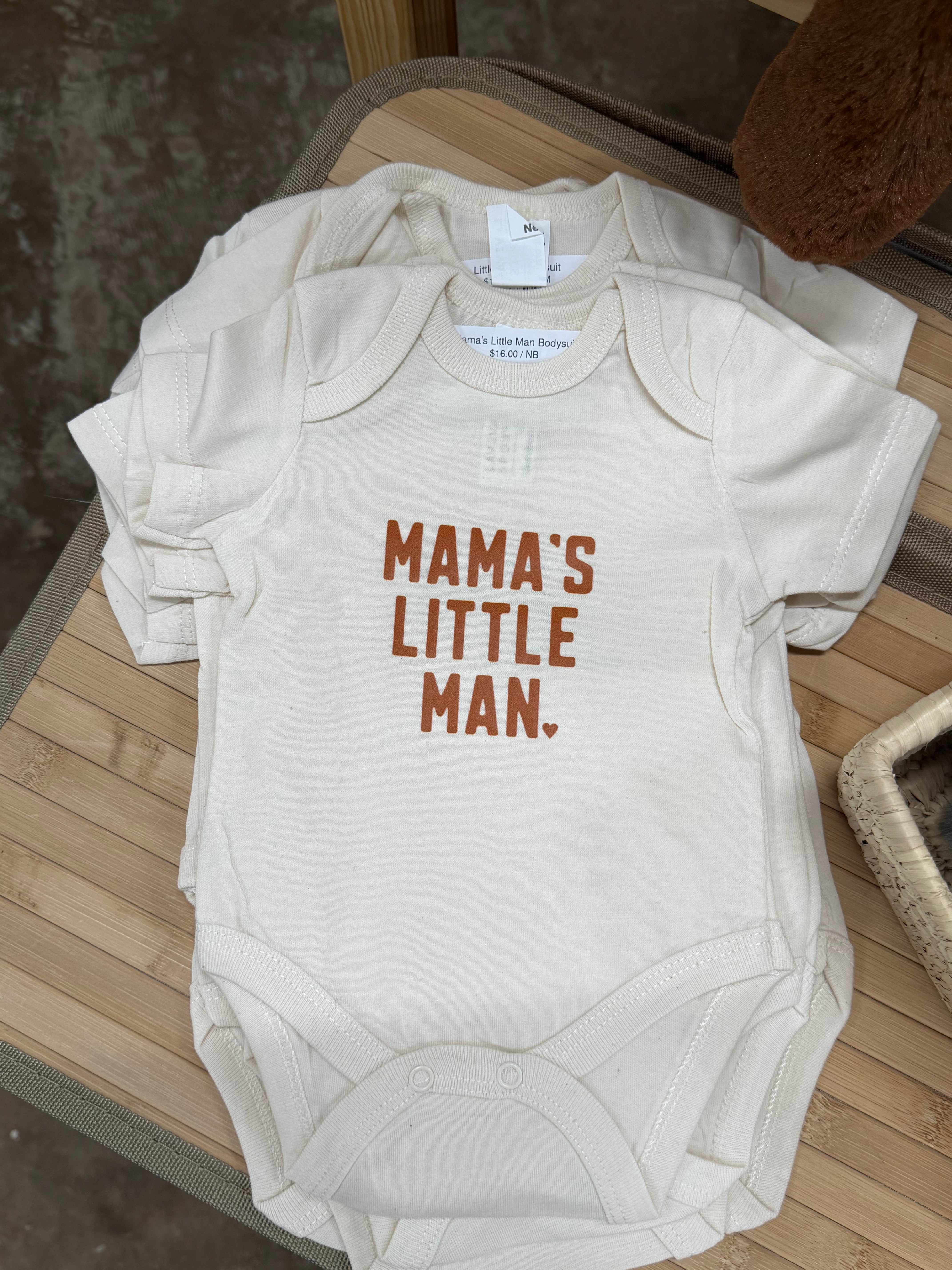 Get ready to spoil your little man with our cream-colored onesie, featuring the playful words "Mama's Little Man". With its soft fabric and charming design, your baby will be the talk of the town. Because let's be real, every mama loves to show off her little man!