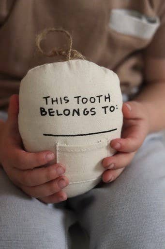 Tooth Fairy Pillow sewn and screen printed by hand on natural canvas by local artisans.