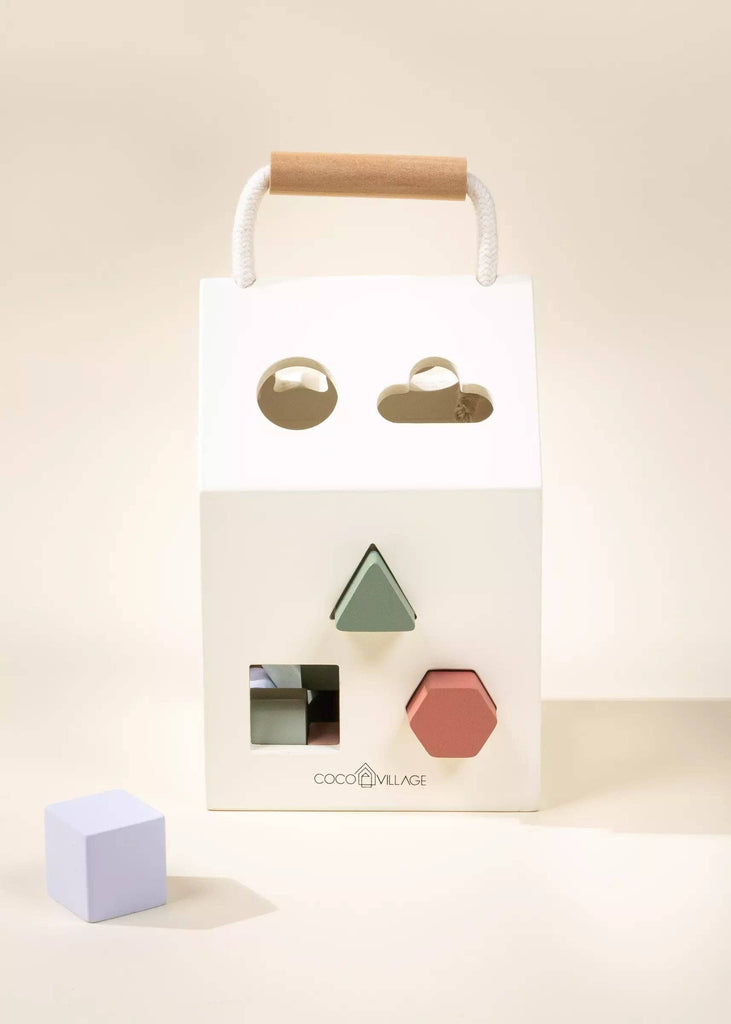 The House of Wooden Shapes is a classic and is quickly becoming a favorite for toddlers! This toy greatly contributes to the motor development as well as the hand-eye coordination of infant. This first exploration for babies will help them discover the world around them, and it is through their senses that they will learn about shapes, colors and textures. DIMENSIONS * Length: 9" (23 cm) * Width: 5.9" (15 cm) * Height: 5.9" (15 cm) FEATURES * Suitable for ages 12+ months * Made of solid wood and plywood * ASTM / SOR. This product meets all current standards for chemical components and safety in objects intended for child use ASSEMBLY & CARE Made for indoor use. Use a dry cloth to remove any dust. Clean with mild soap and water.