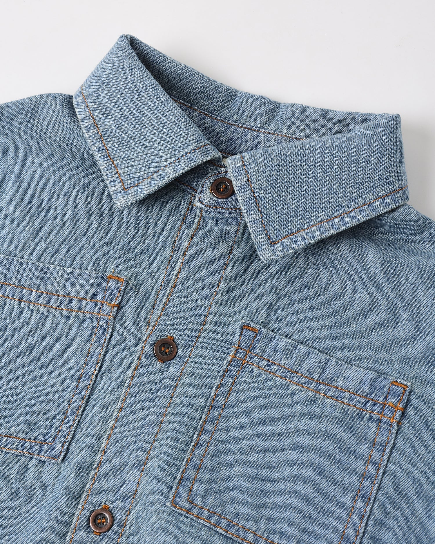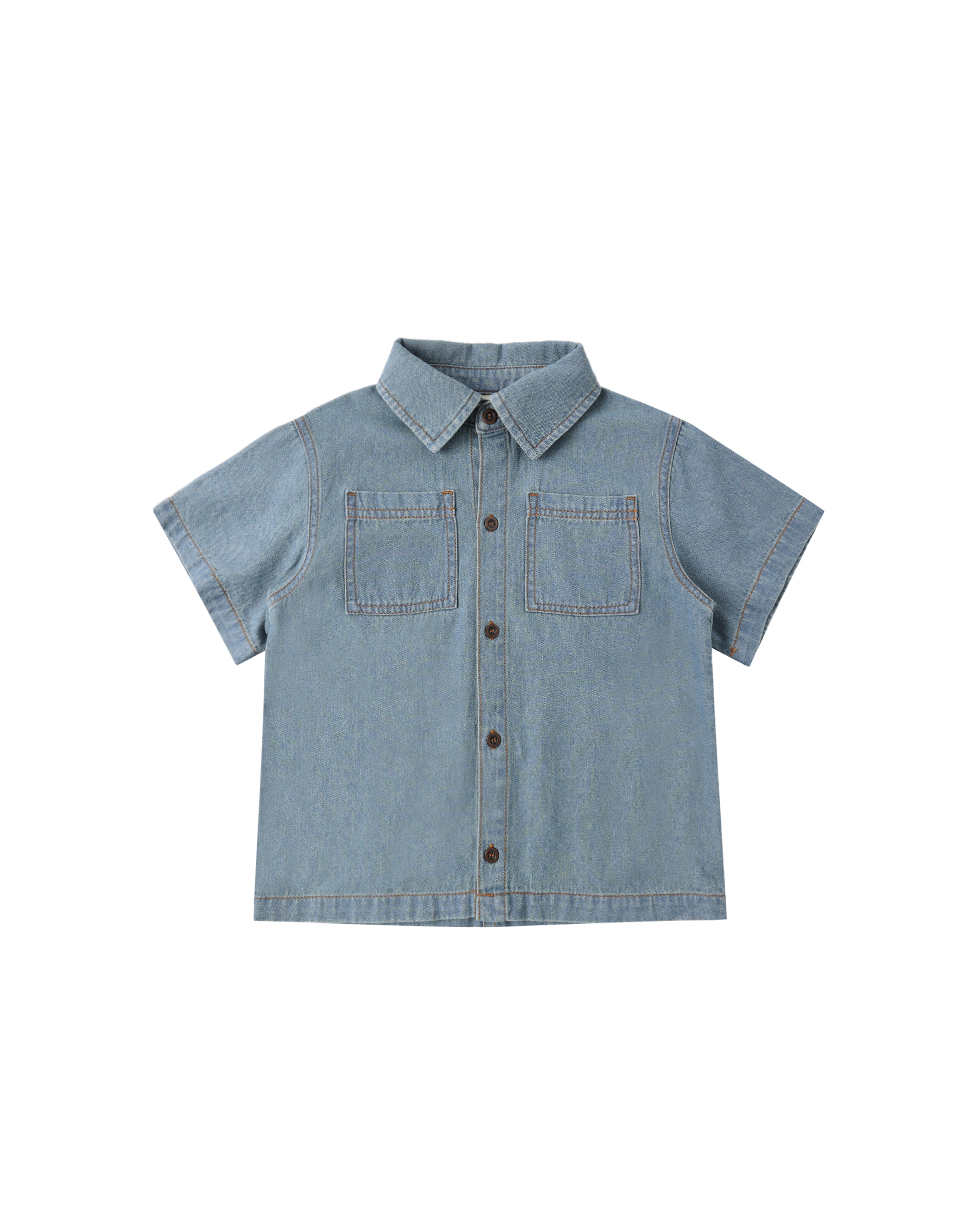 This cool Denim Short Sleeve Overshirt features antique brass snaps and classic patch pockets. Perfect for those warmer spring days.