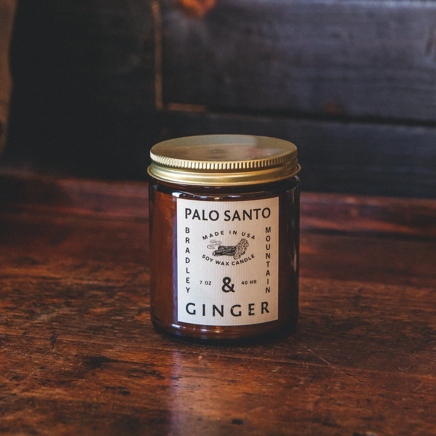 From our Amber Candle series: Palo Santo & Ginger. An ode to the desert lovers. Burning Palo Santo is one of our favorite things to do in the workshop, so naturally we wanted to create a candle that reminds us of those days. Notes: Camphor, Desert Clay, Palo Santo & Terra-Cotta Diameter: 3 in Height: 3 in Approx. Net Wt: 8 oz Approx. Burn time: 40+ hours Infused with Natural Essential Oils Never Test On Animals Phthalate Free Made in USA - In House