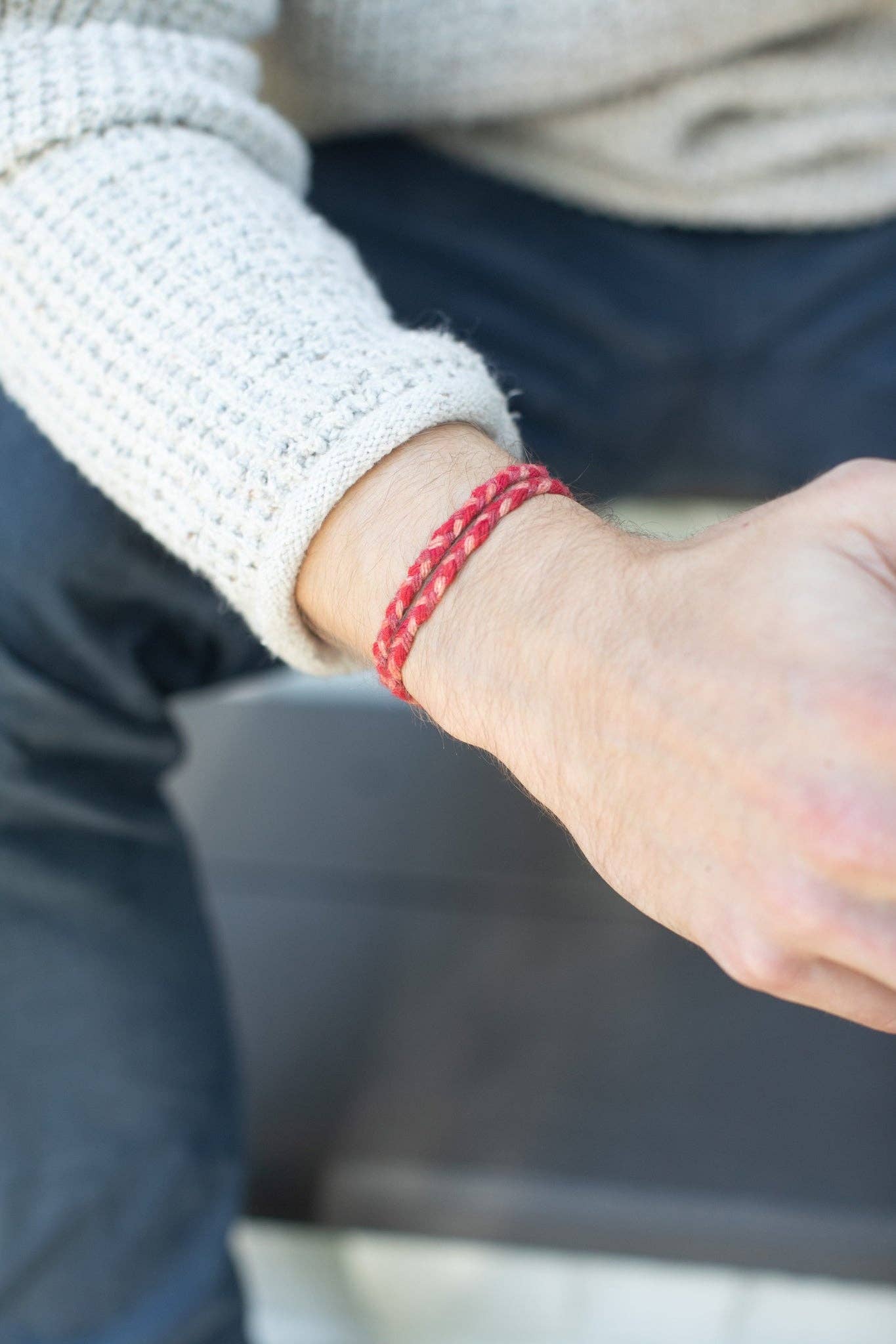 Each Card comes wrapped with two 16" long hand-woven string bracelets to wrap once or twice around each person's wrist.