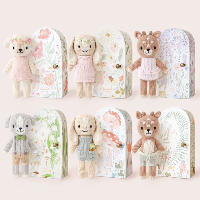 Introducing the Tiny Collection by cuddle+kind. Beautiful hand-knit tiny dolls with stunning craftsmanship and exquisite details that make them little works of art. You’ll love to collect and share these 6" renditions of beloved cuddle+kind characters with your little one so they can create memories they will treasure forever.